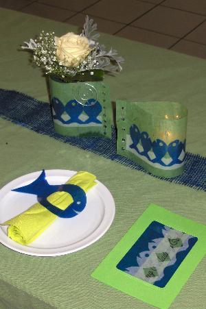 Tischlicht aus Laminierfolie und passendem Serviettering.