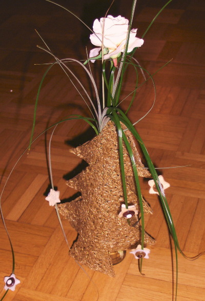Wie zum Beispiel dieser Weihnachtsbaum. Erst Geschenkverpackung für eine Piccoloflasche, dann als Blumenvase.