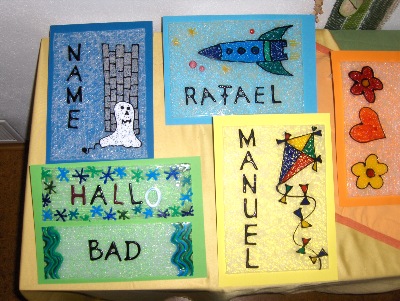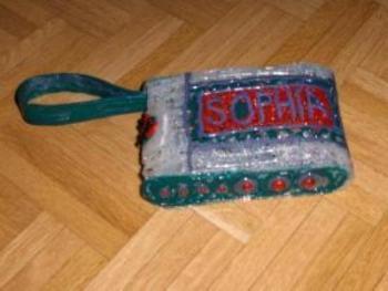 Schüssel- Anhänger können mit Text z.B. Hallo oder mit kurzen Namen hergestellt werden.
