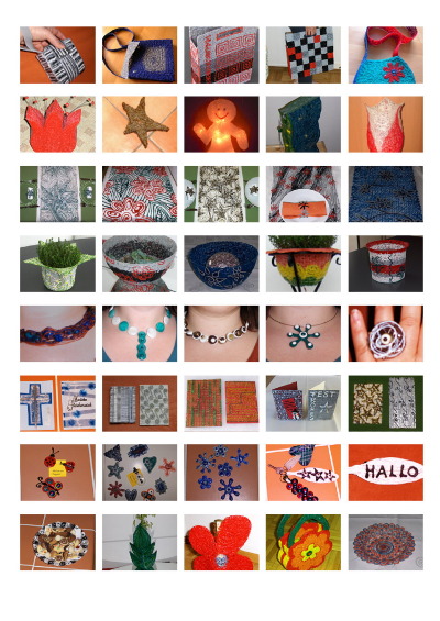 Heißklebedesign ist eine neue und einzigartige Herstellungsart. Ich habe im laufe der Zeit herausgefunden, das man mit Heißkleb nicht nur Sachen an- und zusammenkleben kann sondern auch eine stabile und gewebeartige Fläche damit herstellen kann. Als ich nun im Jahr 2006, farbige Heißklebesticks entdeckt habe war die Idee gebohren und seitdem fertige ich Taschen, Leuchten, Tischläufer, Serviettenringe, Schmuck, Grußkarten, Magnetpins, Schlüsselanhänger, Gefäße, Geschenkverpackungen und viele weitere interessante Gegenstände in allen möglichen Farben, Formen und Größen.